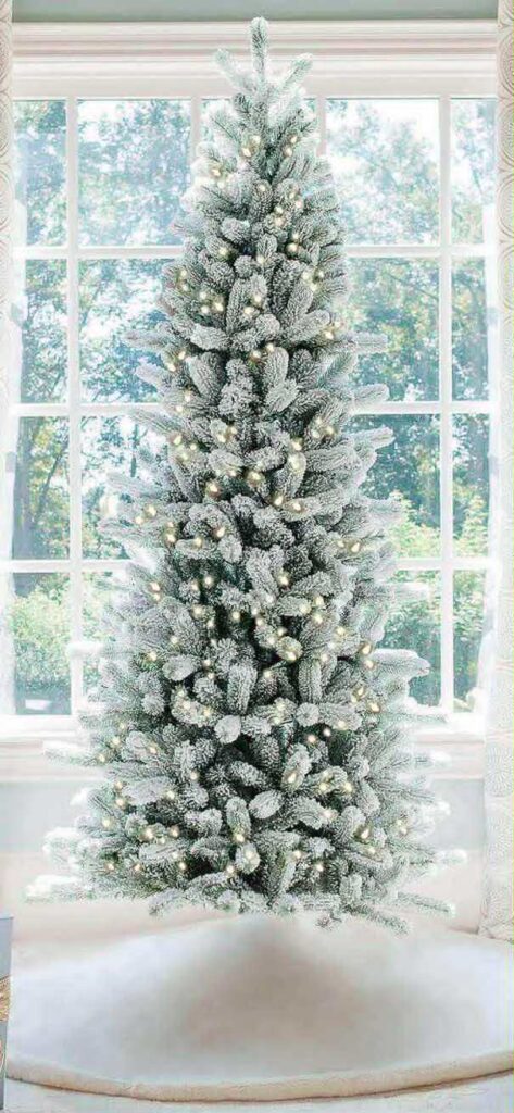 - Variety of styles, from slim trees for smaller living spaces to tall 9’ trees for a grand white Christmas feel.